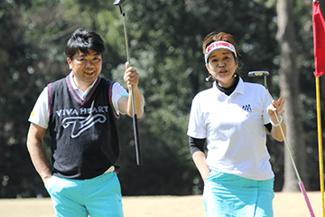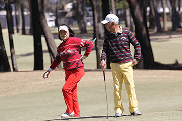 水色のパンツとスカートで合わせた稲村選手、稲坂選手もコースを楽しんで回っていました。