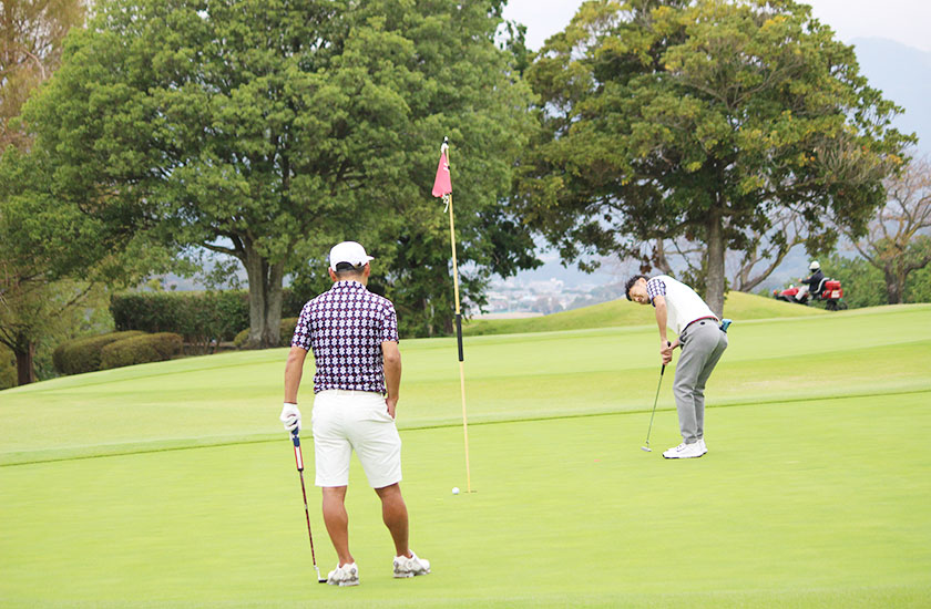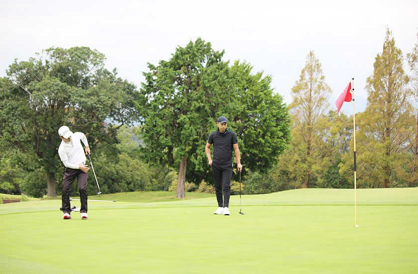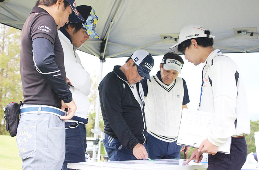 中部地区決勝を6アンダー66でトップ通過してきた「MMC ゴルフ部OB」の二人。勢いそのままに「目標は10アンダー」とスタートするもアウトで伸ばせず、4アンダー68止まり。「コースをなめてました(笑)」と反省の弁。