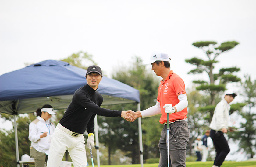 同組ペア、「ラーメンイオリ」の佐藤伸彦選手と山野内貴義選手の二人も「すばらしいコースで楽しめました!」と、笑顔でホールアウト。