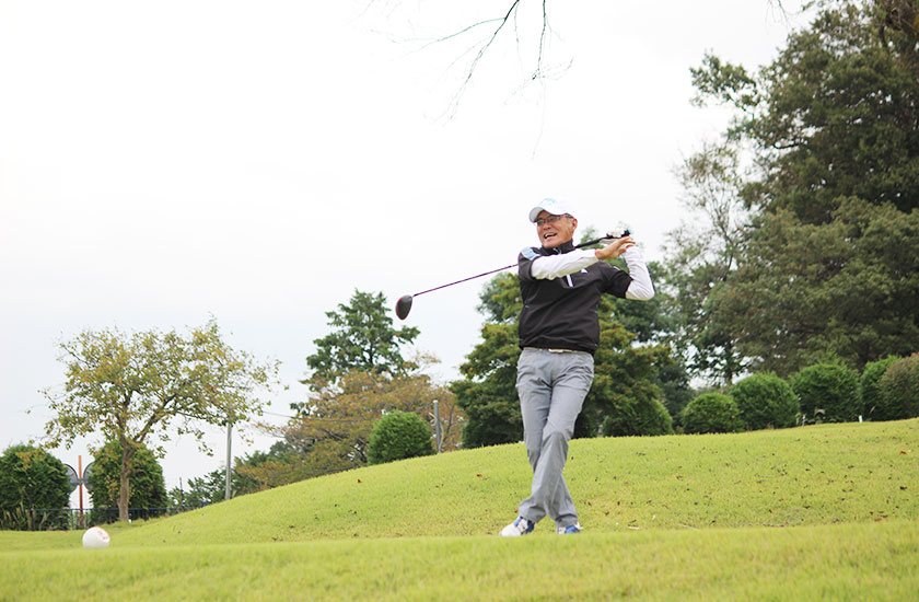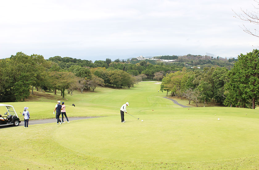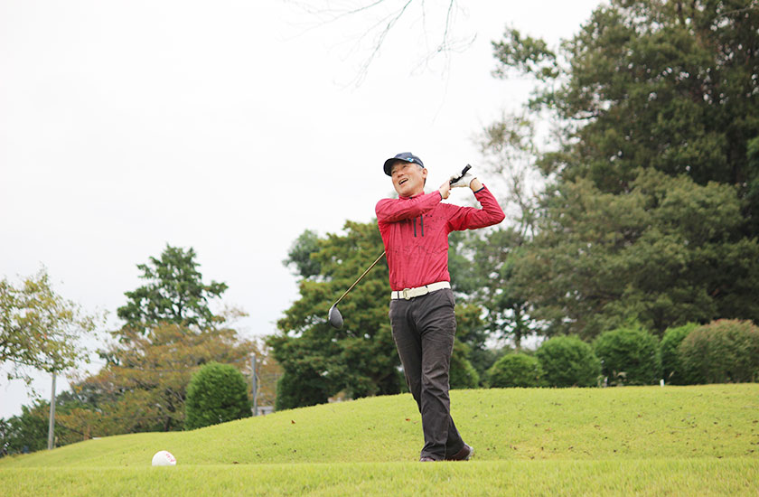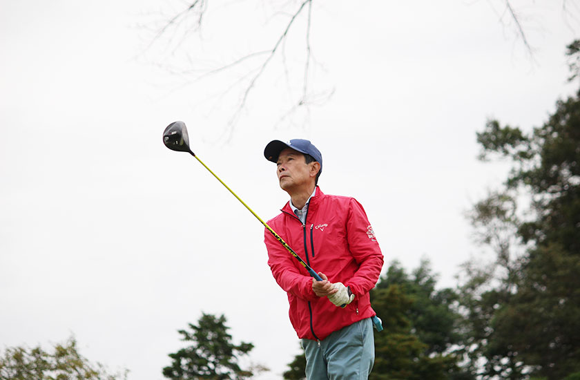 折り返し、後半のハーフがスタートしましたが、午後になっても曇り空は変わらず。普段ならアウト、イン共にスタート方向に富士山を望むことができるのですが……今日は鉛色の厚い雲に覆われたまま。一向に、その姿を見せてくれません。