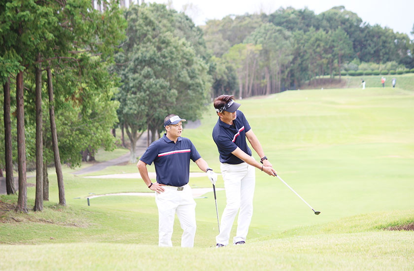 「後半はバーディーたった一つだけ。ティーショットが難しかった」と語るのは、菅原将晶選手と伊藤慶太選手のペア「メローウッド1軍」。