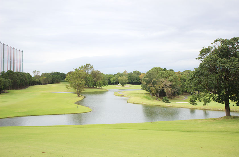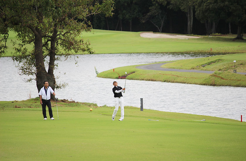 最終18番ホールは、フェアウェイの左に大きな湖が絡む名物ホール。