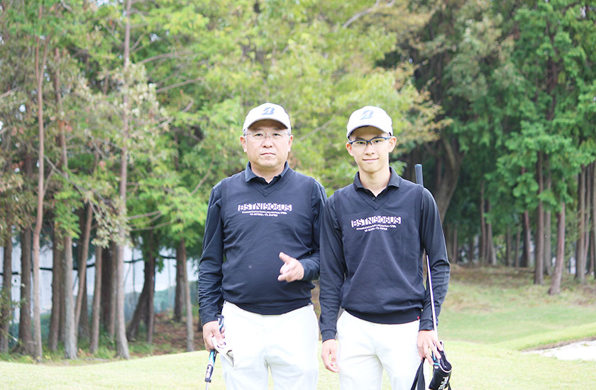 同組の山崎一人選手と徳能浩孝選手のペア「TS2」。3オーバー、75と奮わず「ペア、解散します(笑)」と思わず一言。
