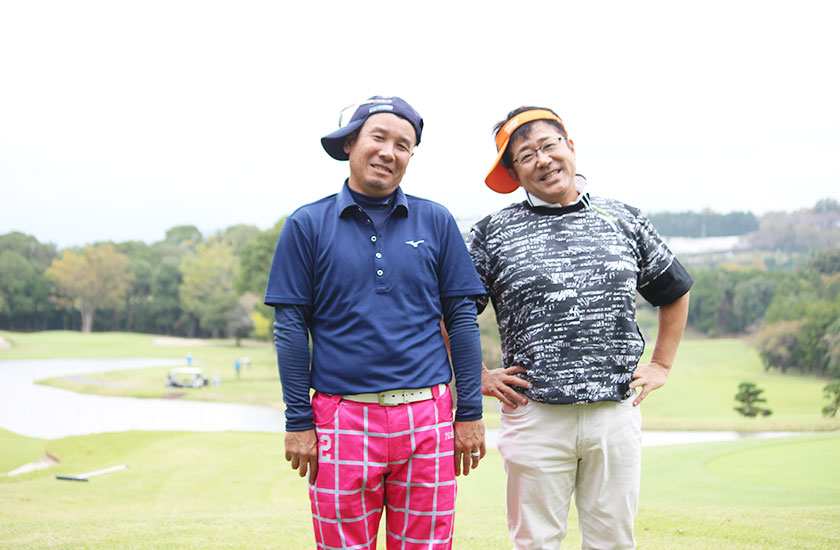 吉田大介選手と杉本司選手のペア「BIG-S」。埼玉県の嵐山カントリークラブで行われた関東B地区決勝ではアウト30、イン28、トータル58の驚異的なスコアで勝ち上がってきましたが、この日は2アンダーの70と奮わず。「疲れました。茨城に帰ります(笑)」と一言いただきました。