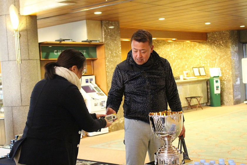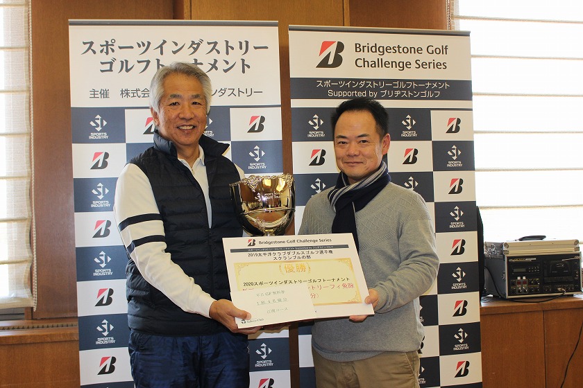 続いて「ダブルススクランブルの部」優勝、アウト33、イン34、トータル67ストロークの5アンダーで、崎山一茂選手、大貫靖浩選手のチーム「Performer」。