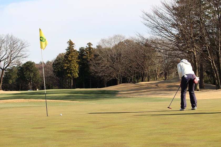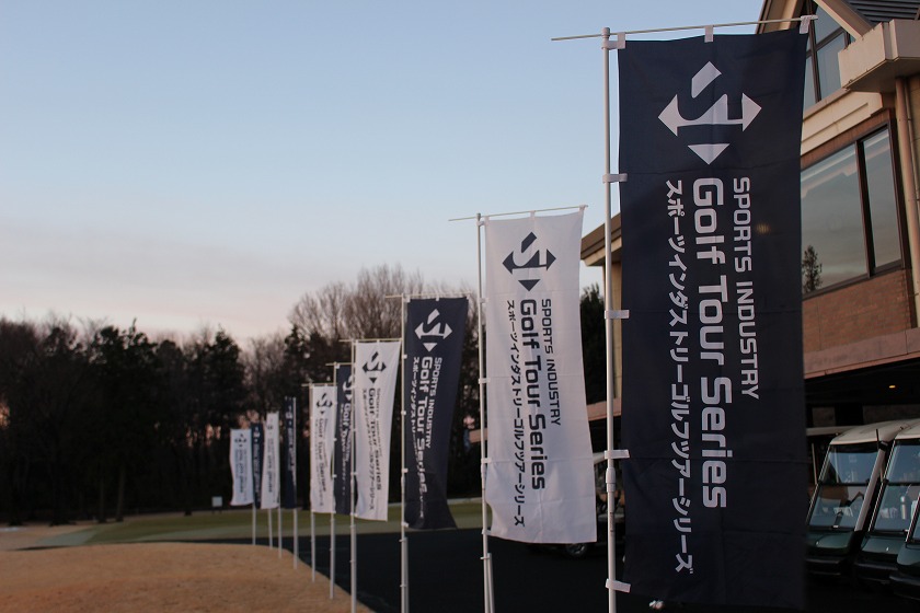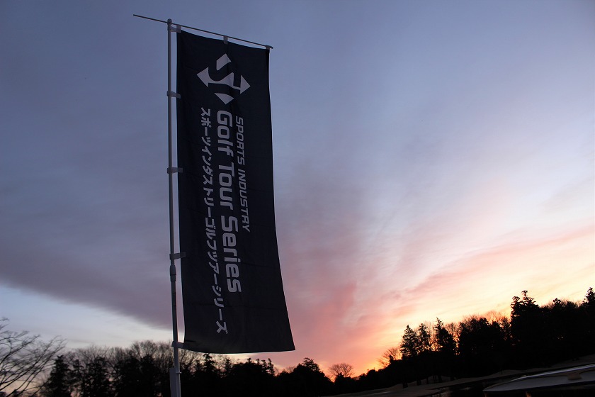 さて、全国で最も暑い場所として有名な熊谷市ですが、そんな夏とは正反対。この日の朝は、まぁ寒い! 身体が心底冷えました。ですが、ご覧ください。東の空が朝焼けで綺麗に染まってきました。まだまだ寒い日が続きますが、冬のゴルフ場の朝はいいものですね! のぼり旗がいい感じに映えます。スタート前に気分も高まってきますね!