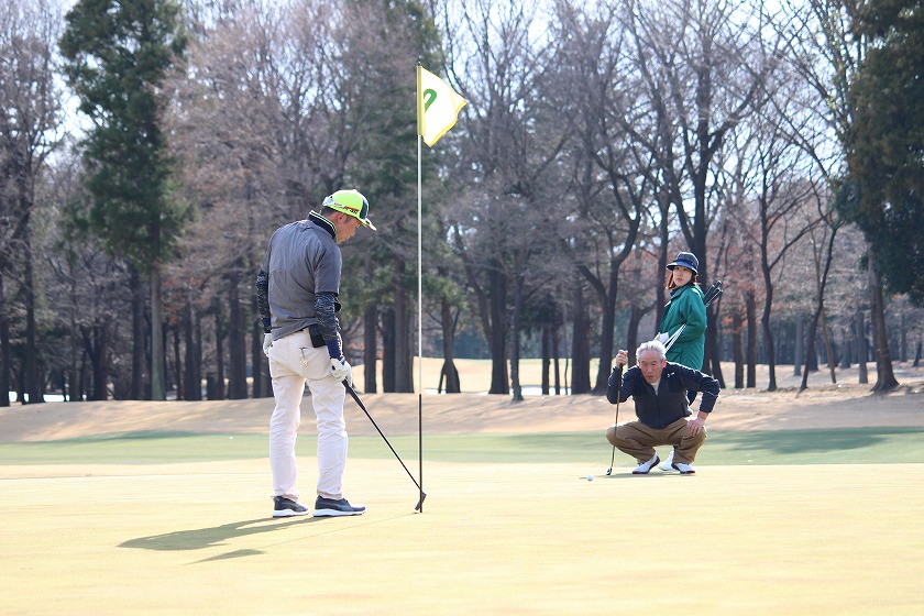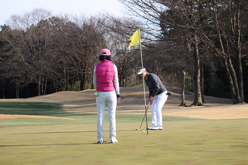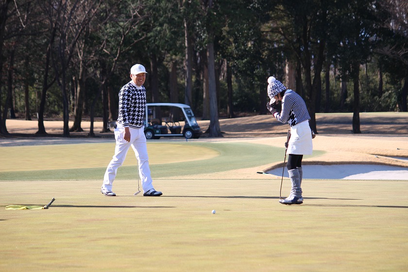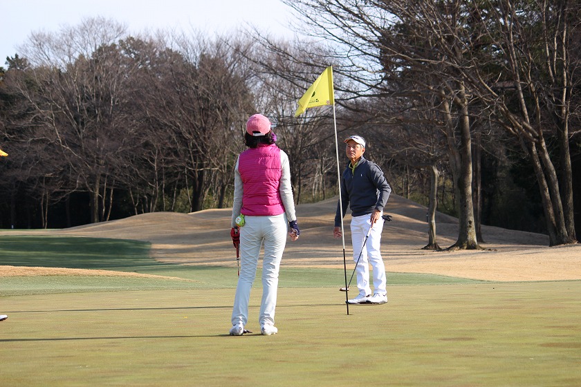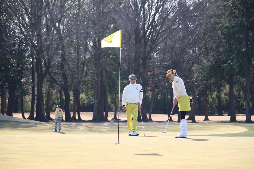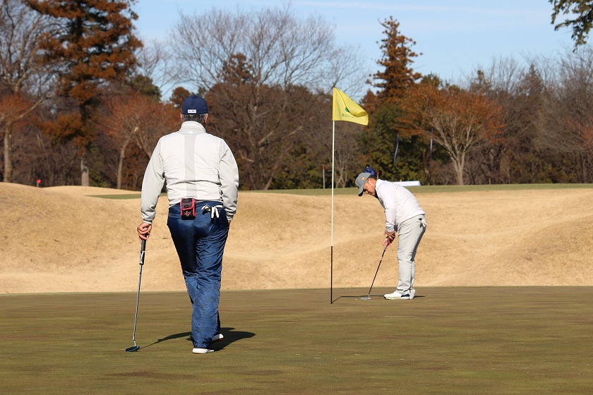 3打目を絶好の位置につけて、いい雰囲気で上がってきたこちらのチーム「TEAM K&K」の渡辺健選手と栗林千津子選手。バーディパットに臨みます。