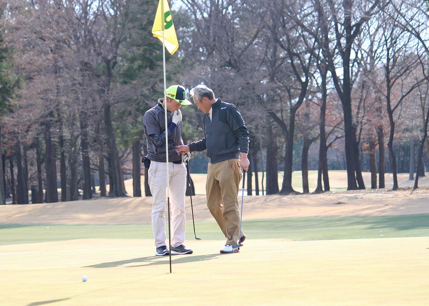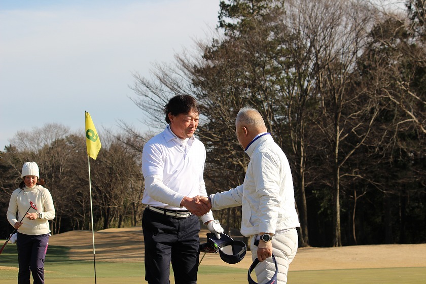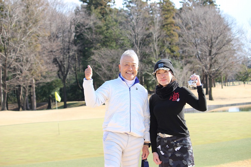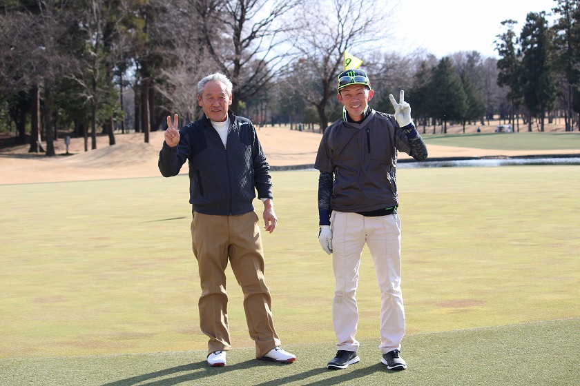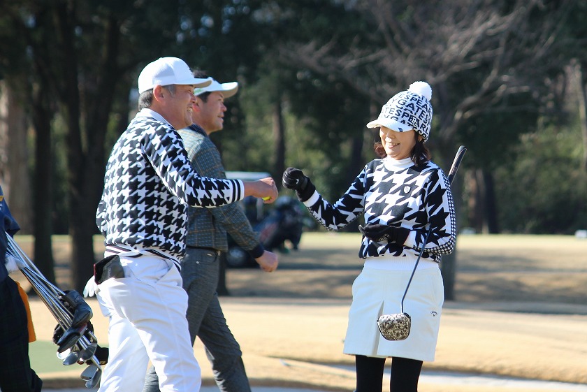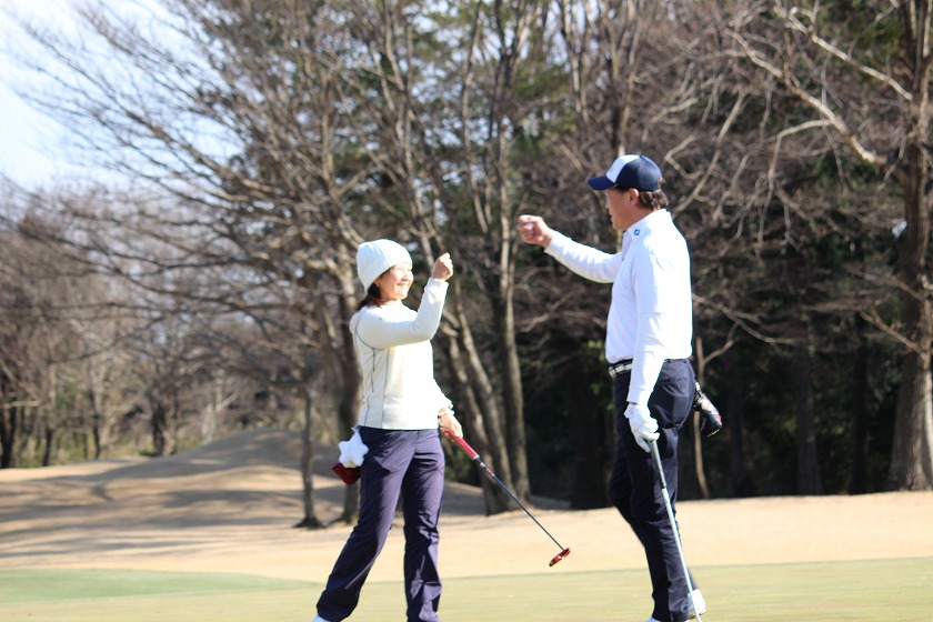 見事に決めてナイスバーディ! いいですねぇ。陽も照ってきて、いつの間にかポカポカと暖かくなってきた中、この笑顔でグータッチ。何だか、羨ましくなってきちゃいます。爽やかな笑顔でガッツポーズも決まっていらっしゃいます。