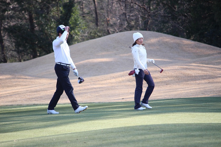 「ゴルフ好きじゃない!」の渡部国浩選手、鈴木早愉里選手。バーディは後半5、6番の連続バーディの2つだけでしたが、今日はノーボギー。トータル2アンダーはお見事した!