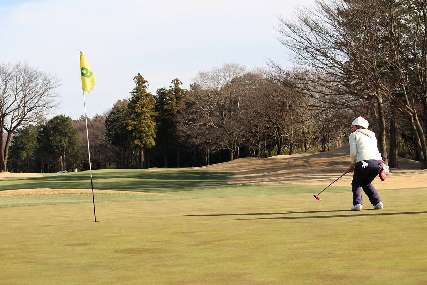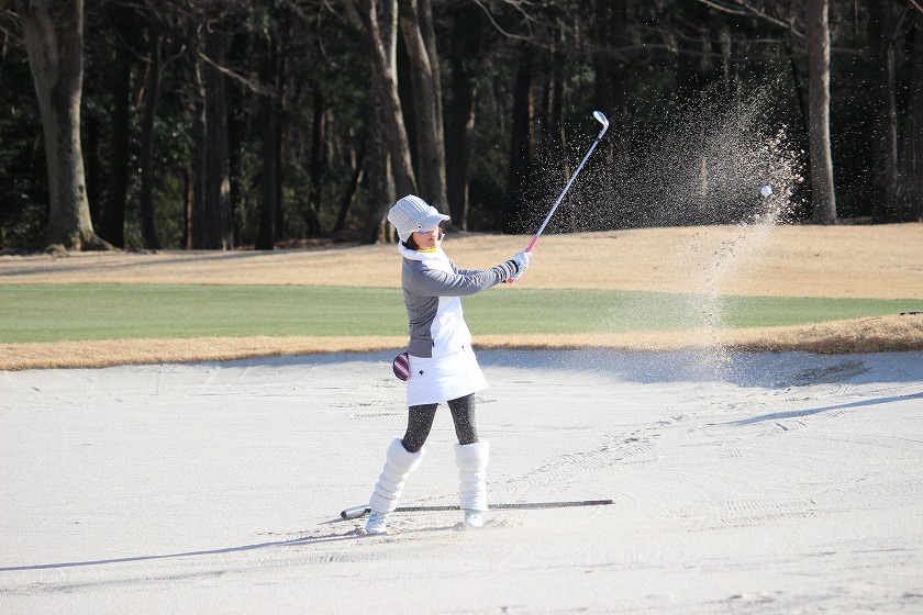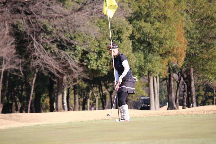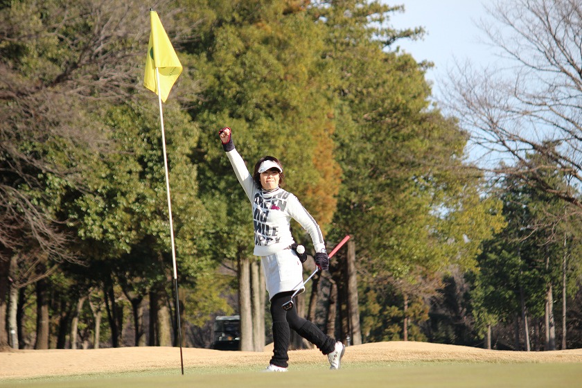 そして、最後に上がってきたのは、レディスダブルスの部「2929」の清野さおり選手、菊間由美子選手と、「バーディーズ」の若井亜紀子選手、中山直子選手。バーディーズはお二人共に3打目をグリーン手前のバンカーに入れるピンチも、中山選手が見事脱出に成功。Well out!