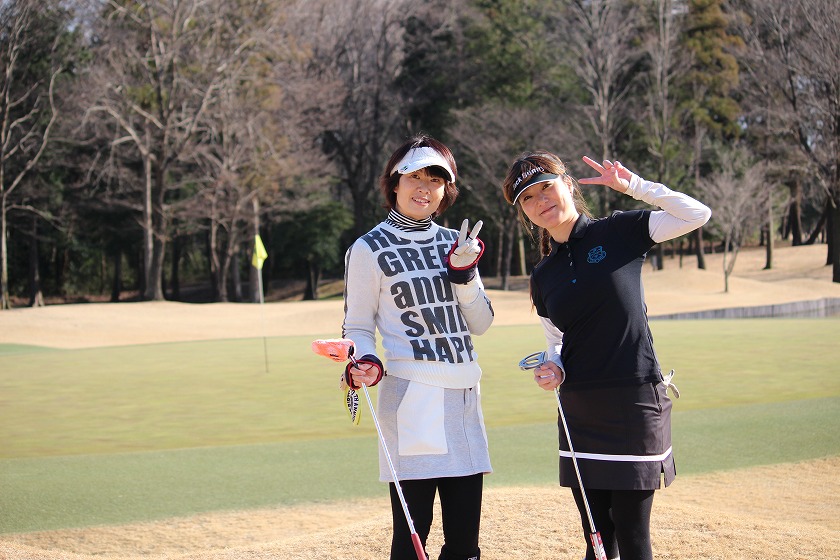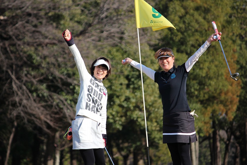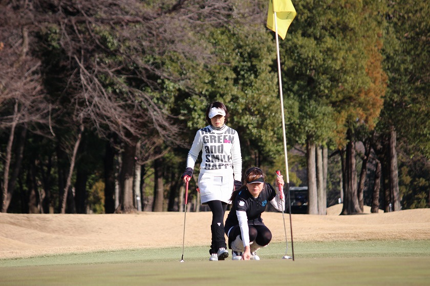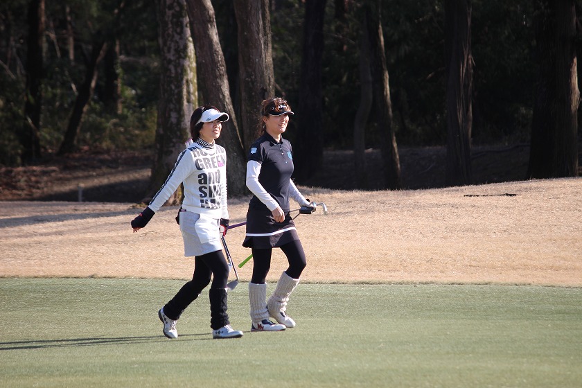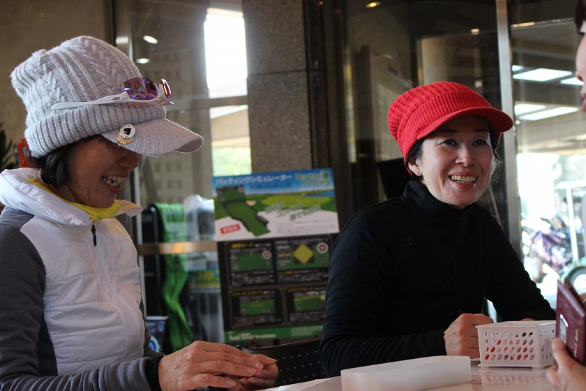 「2929」の清野さおり選手、菊間由美子選手。何と、今のバーディが本日初のバーディということで「終わりよければすべてよし!」と、大喜びのお二人でした。