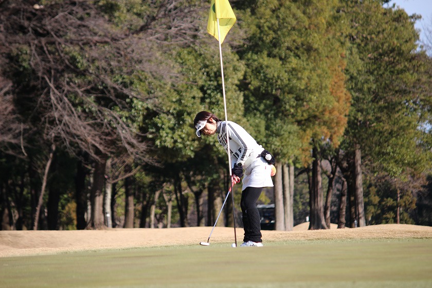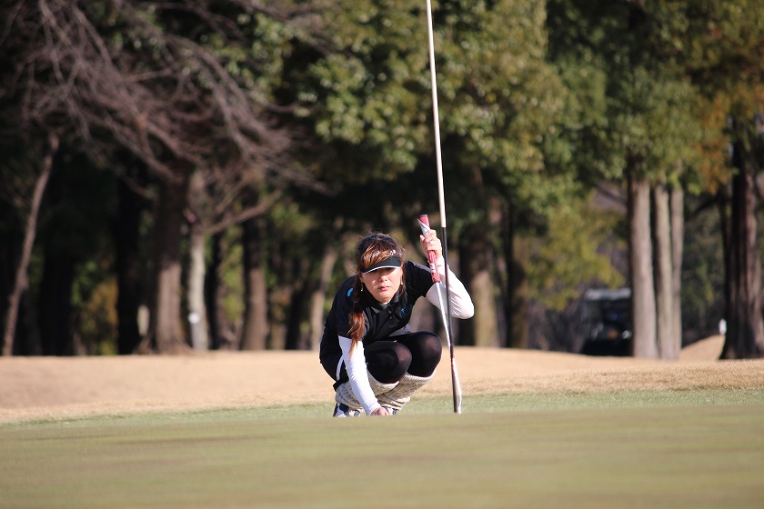 お二人ともにパットを決められず、惜しくもパーセーブはなりませんでしたが、ナイストライでした! そして残るは「2929」のバーディトライ。これは慎重に決めたいところ。じっくりとラインを読んで、さぁ、決められるか……