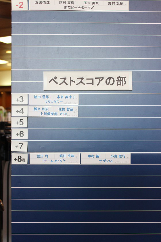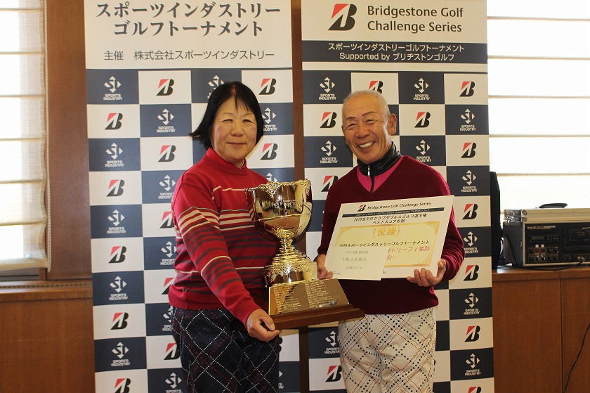 そして最後は「ベストスコアの部」優勝、アウト38、イン37、トータル75ストロークの3オーバーで、植田雪雄選手、本多美津子選手のチーム「マリンタワー」。
