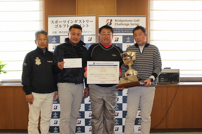 まずは「チームスクランブルの部」優勝、アウト31、イン30、トータル61ストロークの11アンダーで、加藤至康選手、中川雅義選手、小原秀夫選手、佐藤栄祐選手のチーム「ラス会」の皆さん。