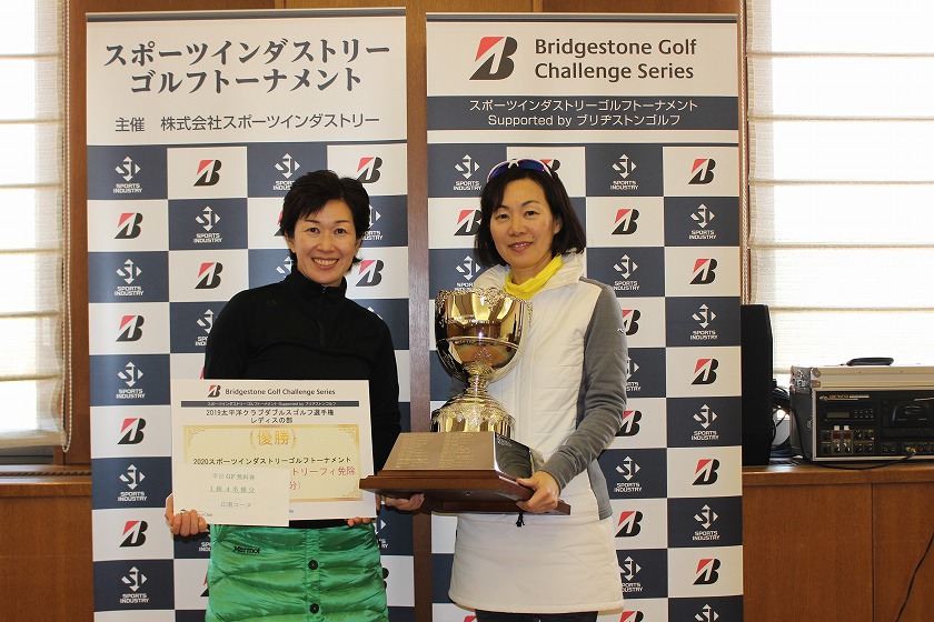 続いて「レディスダブルスの部」優勝、アウト35、イン34、トータル69ストロークの3アンダーで、若井亜紀子選手、中山直子選手のチーム「バーディーズ」。