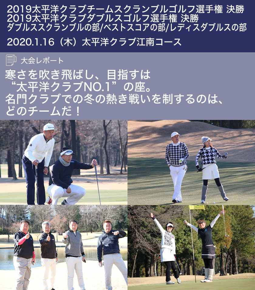 新年あけましておめでとうございます。今年も「スポーツインダストリーゴルフトーナメント Supported by ブリヂストンゴルフ」をよろしくお願いいたします。昨年4月に開幕しました2019年シーズンも、残すところあとわずか。今回は「2019太平洋クラブ チームスクランブルゴルフ選手権」と「2019太平洋クラブ ダブルスゴルフ選手権」決勝大会の模様をレポートいたします。