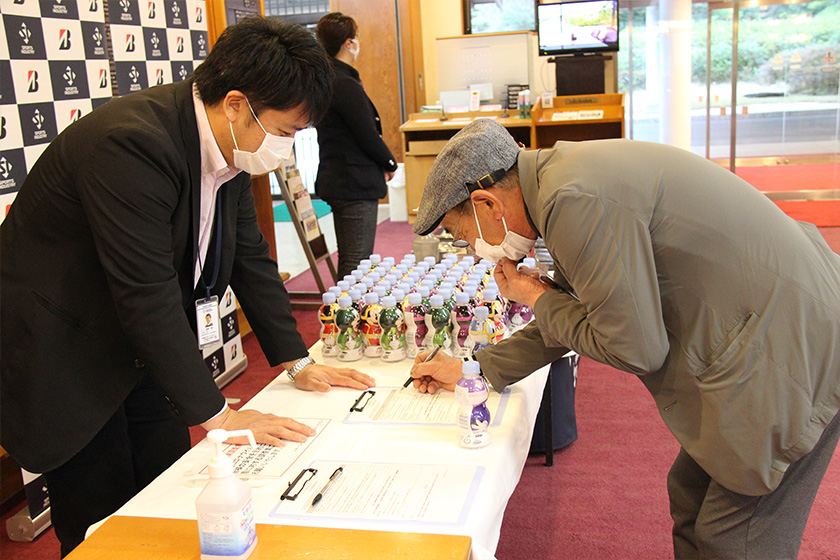 受付では健康状態の申告と体温測定をお願いしております。皆様のご協力、ありがとうございます。