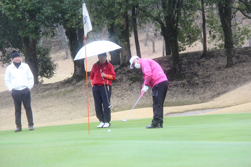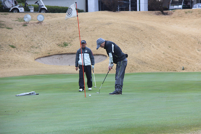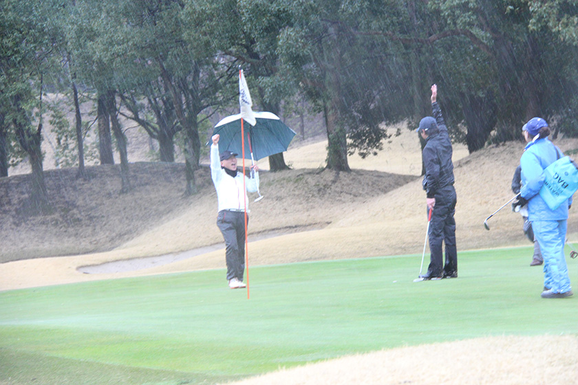 この厳しいコンディションにもめげず、後半も18番ホールでは有終の美を飾る素晴らしいバーディ奪取を見せていただきました。参加選手の皆さん、一日寒い中、お疲れさまでした!