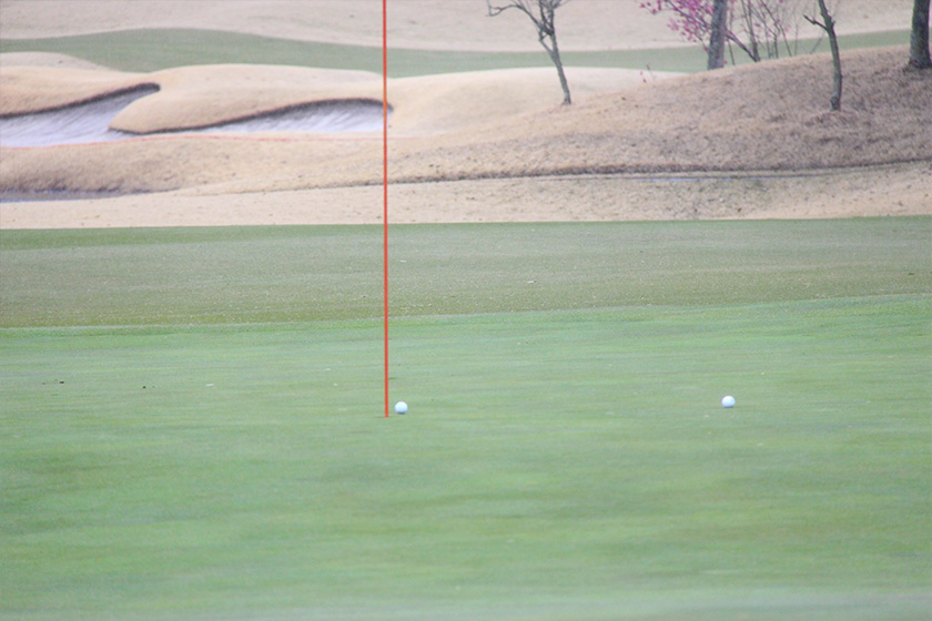 これまた内側につけた! しかもピンそばベッタリこの距離! ファインショット!!