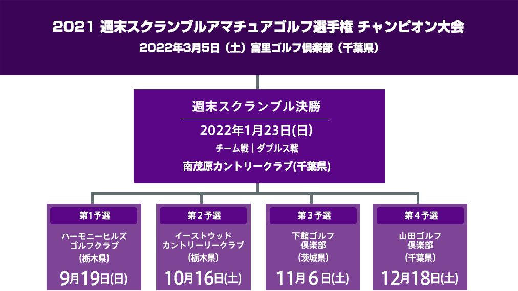 | 決勝 | 2022年1月23日(日 ) | 南茂原カントリークラブ (千葉県) | 17,000円(税込) キャディ付│乗用カート |